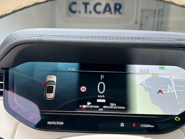 3. Bremsleuchte, Adaptive Geschwindigkeitsregelanlage (ACC) mit Lenk-Assistent, Adaptive Geschwindigkeitsregelanlage (ACC) mit Stop&Go-Funktion und Lenkassistent, Aktive Sicherheitsgurte, Allradlenkung, Allwetter-/ Ganzjahresreifen, Ambiente-Beleuchtung, Antriebsstrangtrennung Vorderachse, Audiosystem: Meridian Sound-System (800 Watt, 19 Lautsprecher, Subwoofer), Automatische Einstiegsabsenkung, Außenspiegel elektr. verstell-, heiz- und anklappbar, mit Abblendautomatik und Umfeldleuchte, Außenspiegel mit Warnsystem Totwinkel, Blinkleuchten mit Lauflicht, Blinkleuchten mit Lauflicht vorn, Bluetooth-Schnittstelle, Bremssättel unlackiert, Dach Wagenfarbe, Dachhimmel Morzine zweifarbig, Einparkhilfe vorn und hinten, Einschaltautomatik für Fahrlicht, Elektr. Bremskraftverteilung, Elektromotor 160 kW (Hybridantrieb), Elektron. Sperrdifferential (Hinterachse), Fahrassistenz-System: Anfahrhilfe (Low Traktion Launch), Fahrassistenz-System: Aufmerksamkeits-Assistent, erweitert (DCR), Fahrassistenz-System: Autonomer Notbrems-Assistent, Fahrassistenz-System: Bergabfahrkontrolle (HDC), Fahrassistenz-System: Berganfahr-Assistent, Fahrassistenz-System: Fernlichtassistent (Intelligent Light System), Fahrassistenz-System: Kollisionswarnsystem Heck (Rückfahr-Assistent / Querverkehrs-Assistent), Fahrassistenz-System: Kollisionswarnsystem hinten, Fahrassistenz-System: Park-Assistent, Fahrassistenz-System: Spurhalteassistent (Lane Departure Warning), Fahrassistenz-System: Tiefenmessung bei Wasserdurchfahrten (Wade Sensing), Fahrassistenz-System: Totwinkel-Assistent mit Spurhalteassistent, Fahrassistenz-System: Verkehrszeichenerkennung (Traffic Sign Recognition), Fahrassistenz-System: Verkehrszeichenerkennung mit Adaptiver Geschwindigkeits-Begrenzeranlage, Fzg. ohne Modell-Schriftzug, Head-up-Display, Heckklappe/-Deckel elektr. betätigt (öffnen + schliessen, sensorgesteuert), Heckleuchten LED, Heckscheibe heizbar, Heckscheibenwischer, Hybrid 405 kW (Motor 3,0 Ltr. - 294 kW), InControl Remote Premium (Onlinedienste / Apps), InControl Wi-Fi (WLAN-Hotspot), Infotainment-System: Pivi Pro, Innenausstattung: Designelemente Noble Chrome, Innenausstattung: Interieur Ebony, Insassen-Schutzsystem proaktiv, Instrumentenanzeige TFT-Farbdisplay (13,7 Zoll), Ionisator zur Luftreinigung Pro mit 2.5 PM Filter, Isofix-Aufnahmen für Kindersitz, Karosserie: 5-türig, Kurvenbremskontrolle (Corner-Brake-Control, CBC), Kühlerjalousie, regelbar (Airpanel), Ladekabel mit Typ 2-Stecker (Mode 3), Ladeleistung HV-Batterie 32 kW (Gleichstrom DC), Ladeleistung HV-Batterie 7 kW (Wechselstrom AC), Leder-Paket, Erweiterte Ausstattung, Lenksäule (Lenkrad) elektr. verstellbar, Luftqualitätssensor, Mittelkonsole mit Armlehne, Mobiltelefon Schnittstelle mit kabelloser Ladefunktion, mit Signalverstärker, Nebelschlussleuchten (2), Otto-Partikelfilter (GPF), Parkbremse elektrisch, Pedale Edelstahl-Design, Pixel-LED-Scheinwerfer, Radioempfang digital (DAB+), Radstand 2997 mm, Reifendruck-Kontrollsystem, Schadstoffarm nach Abgasnorm Euro 6d, Scheibenwaschdüsen heizbar, Seitenscheiben hinten gehärtet, Seitenscheiben vorn Verbundglas, Service-System: Amazon Alexa, Servolenkung elektro-mechanisch, Sitzbezug / Polsterung: Leder Semianilin perforiert (Ebony), Smartphone kabellose Schnittstelle (Apple CarPlay & Android Auto), Soft-Close-Automatik für Türen, Sprachsteuerung System, Start-Stop-Knopf (Start/Stop-Anlage ohne Schlüssel), Start/Stop-Anlage, Surround-Kamerasystem, Teppich-Fußmatten, Teppichboden (Ebony), Terrain-Response-System 2, Touchscreen-Farbdisplay (13,1 Zoll), Traktionskontrolle, Türgriffe außen ausfahrbar / versenkbar, USB-Anschluss in Mittelkonsole, USB-Anschluss Mittelkonsole hinten, Verteilergetriebe zweistufig (Untersetzungsgetriebe), Wankneigungskontrolle (Roll Stability Control, RSC)